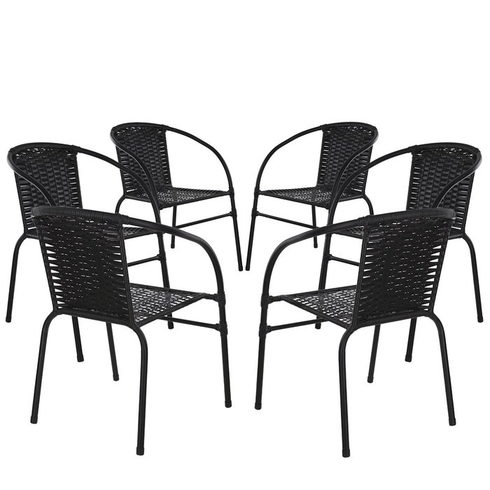 Conjunto 6 Cadeiras Happy Hour Varanda Área Sacada Edícula Empilhável Jardim Artesanal Preta