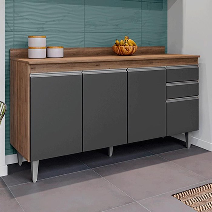 Conjunto Balcão de Cozinha com Tampo Dodoma Mdp/bp Freijó/grafite G96 - Gran Belo