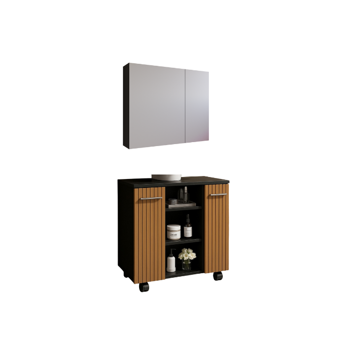 Conjunto Banheiro Espelheira Klein Gabinete Premium para Pia de Coluna - Jm3 Móveis:esp.preto-nature