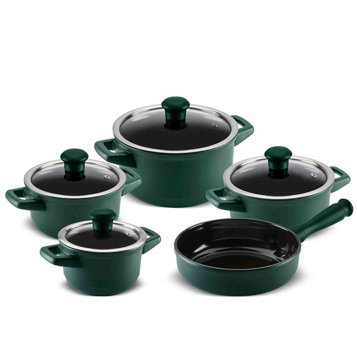 Itens inclusos: 01 caçarola 14 cm; 01 caçarola 16 cm; 01 caçarola 18 cm; 01 Caçarola 20 cm e 01 Frigideira 20 cm.
