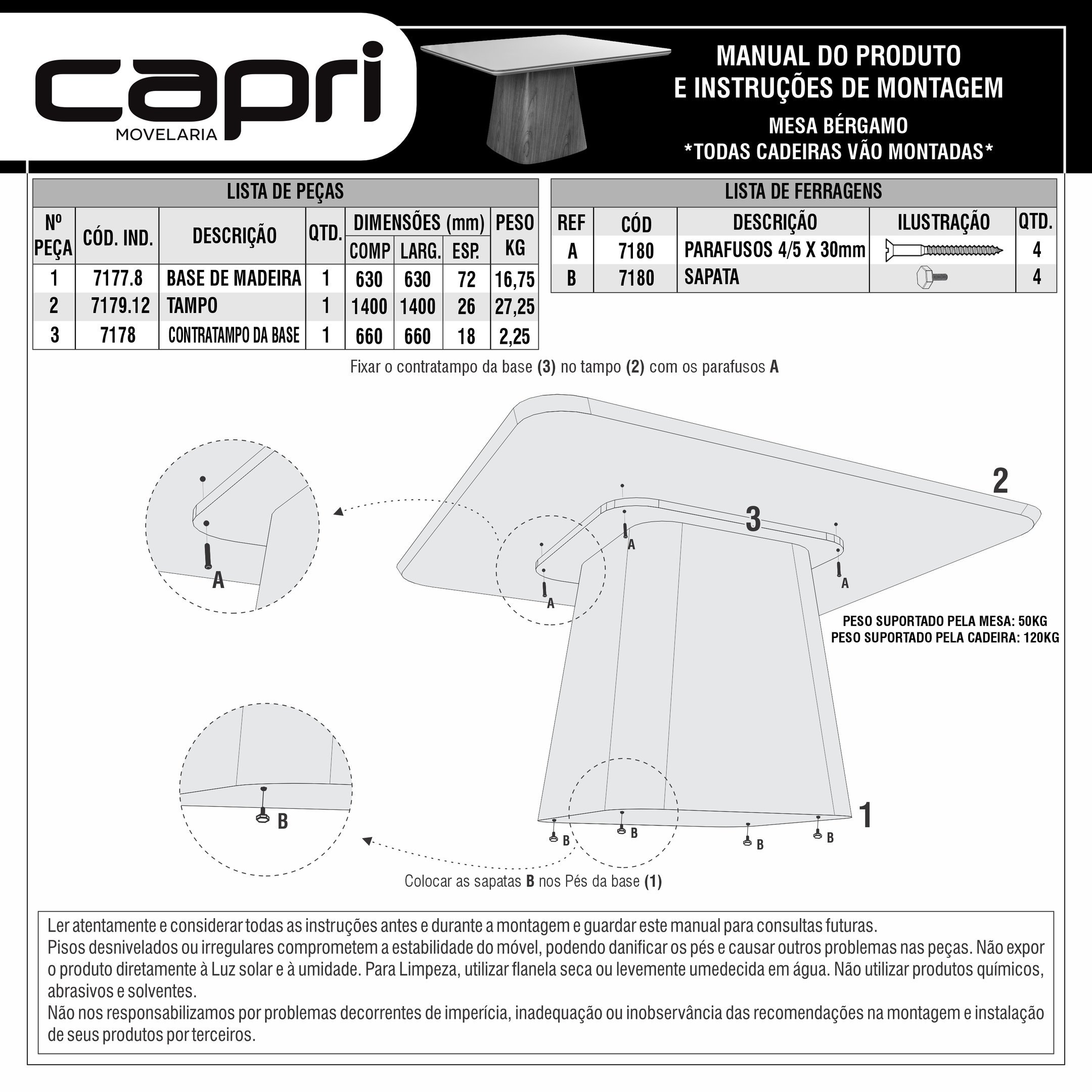 Cadeira/Banco Suporta Até | 120 kg |