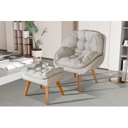 Conjunto Poltrona Linho Luxuosa + Puff Sênior Almofadada:branco Off Linho