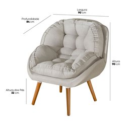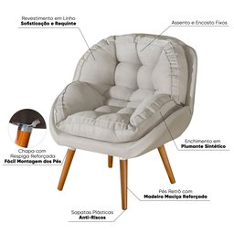 Conjunto Poltrona Linho Luxuosa + Puff Sênior Almofadada:branco Off Linho Branco Off Linho