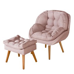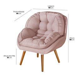 Conjunto Poltrona Linho Luxuosa + Puff Sênior Almofadada:rosa Linho
