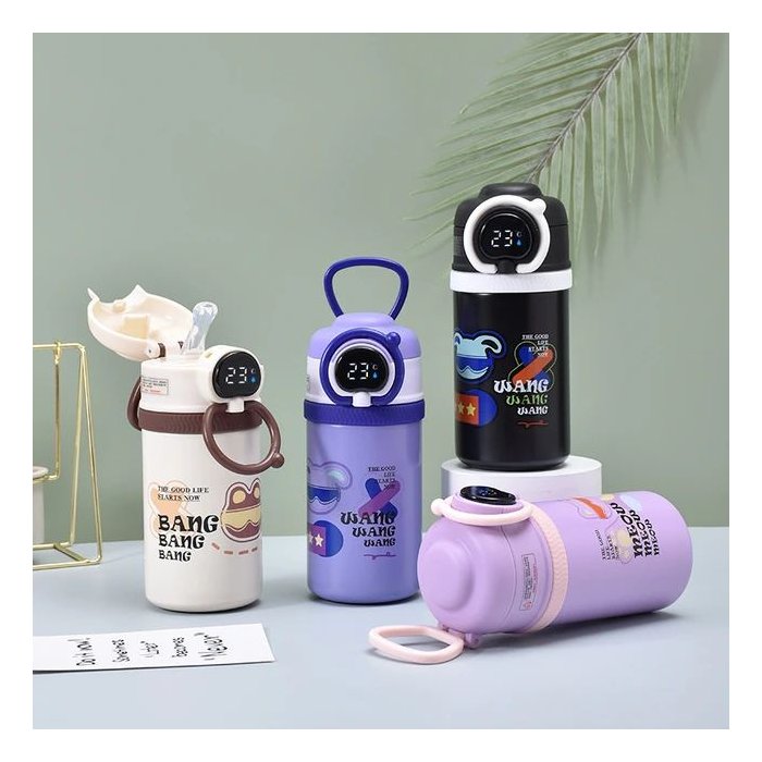 Copo Térmico Infantil com Visor Inteligente de Temperatura:preta