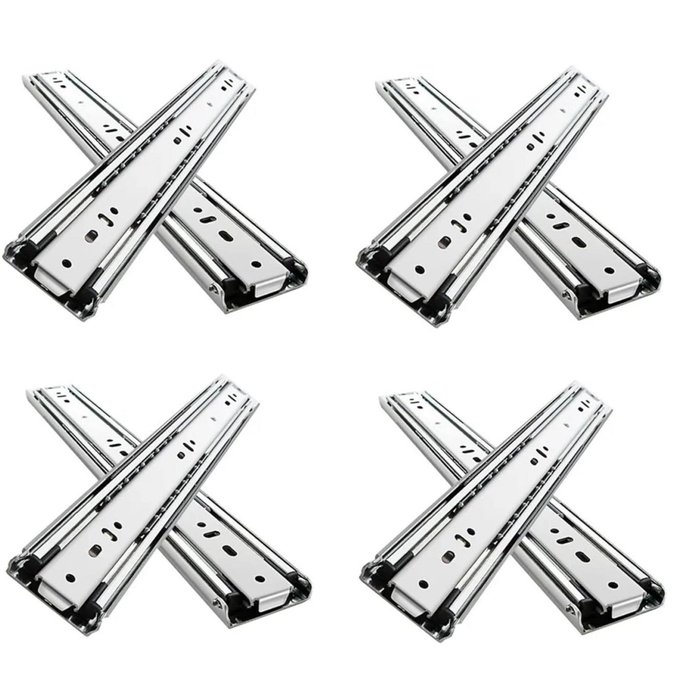 Possuem 450mm e suportam até 45Kg ao par, dessa forma são muito utilizadas em gavetas que necessitam de uma capacidade de carga superior.