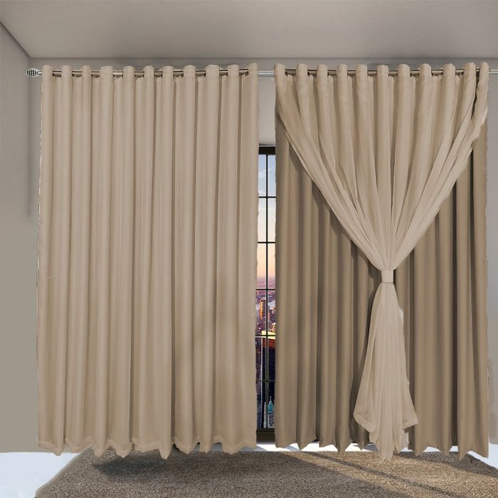 Cortina de blackout em tecido para Corta Luz 5,50 metros x 5,00 Com Voil Voal liso Para Sala Quarto