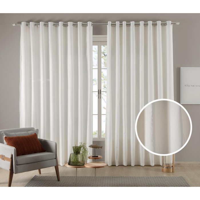 A cortina é confeccionada em Tecido Madras Rústico Linhão, sendo um tipo de tecido especialmente feito para confecção de cortinas. O Tecido Linhão tem por característica garantir um toque macio e um belo caimento para a cortina após sua instalação, sendo considerado um tecido premium para a confecção de cortinas.