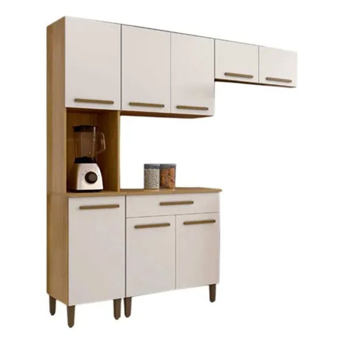 Cozinha Completa Criativa 8 Portas 1 Gaveta Pés Reguláveis Arte Móveis Cinamomo / Off