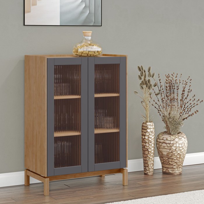 Cristaleira 2 Portas 115cm 100% Madeira Maciça Barcelona Tauari/Concret