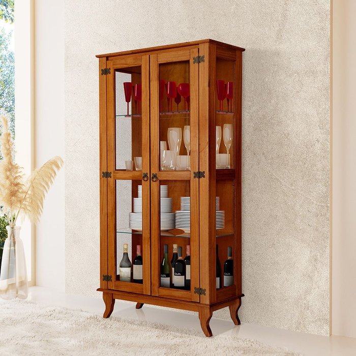 Cristaleira de Madeira Antiga com 2 Portas de Vidro Bella Lunna Castanho