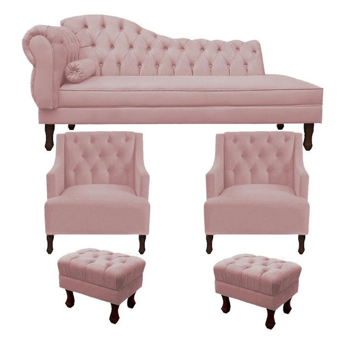 Divã Cancun 140 Direito + 2 Poltronas + 2 Puffs Rosê