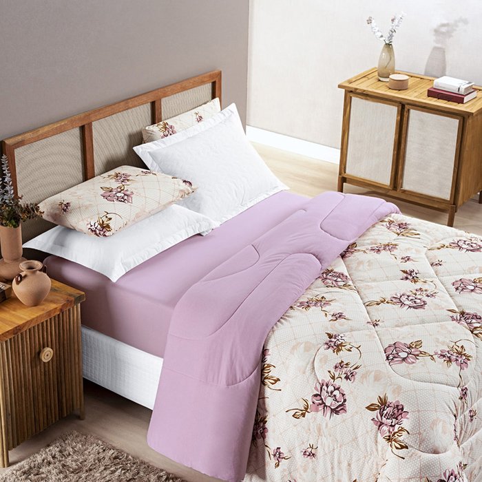 A característica dupla face deste edredom o torna versátil e versátil. Com duas estampas exclusivas, você pode alterar a aparência do seu quarto sempre que desejar, adicionando um toque de requinte e estilo à decoração.