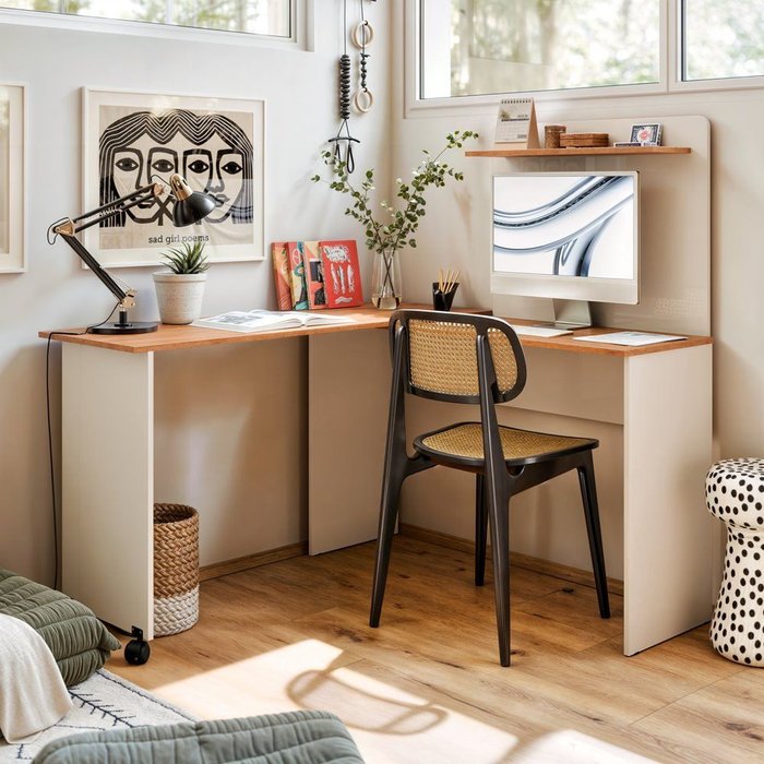Escrivaninha em L: Off White/freijo Off white/Freijo