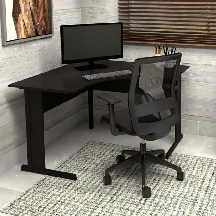 Escrivaninha P/ Escritório em L 120cm X 60cm Pés Metal F5 Preto