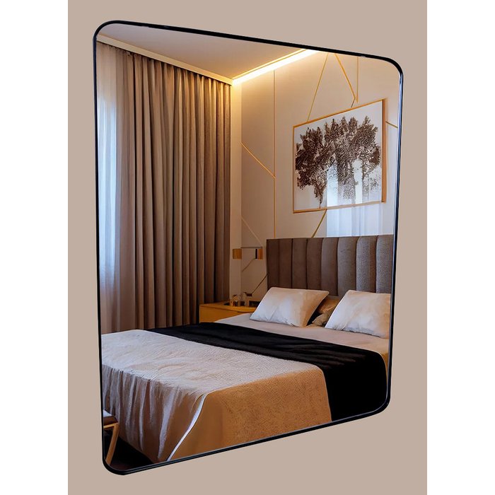 Espelho com Moldura em Metal Retangular com Cantos Arredondados Mobília Express Pequeno Dourado Preto / Dourado / Rosé