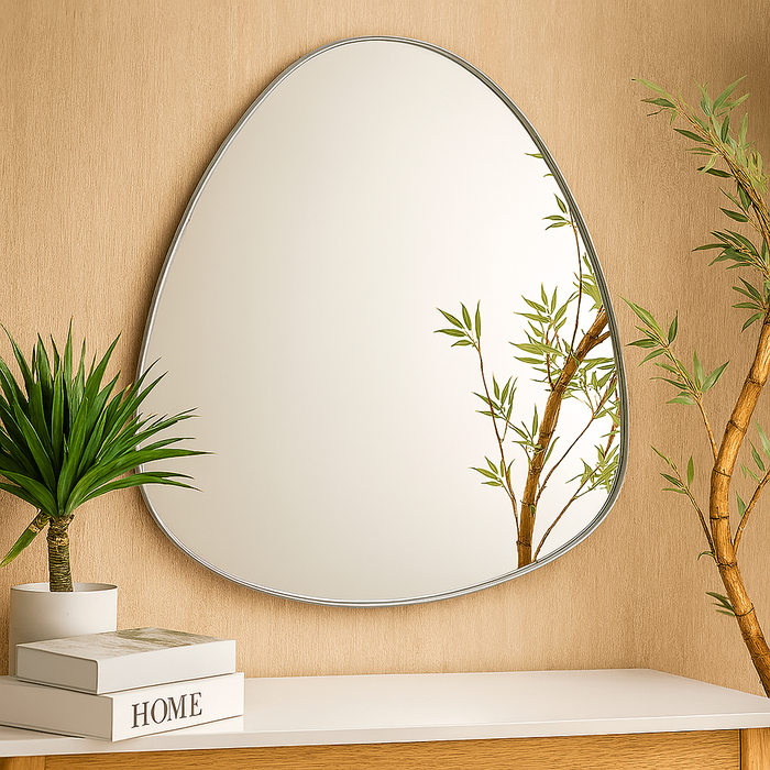 Espelho Orgânico Moderno com Moldura em Alumínio Closet 90x80cm Prata