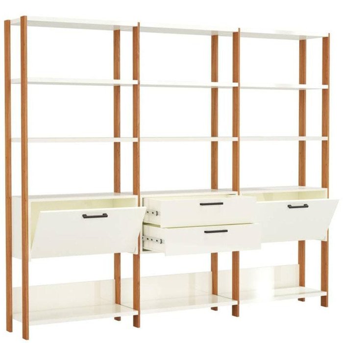 Estante Elegante 3 Torres com 1 Gaveteiro e 2 Portas 2,16 Mt (larg) Cor Off White Brilho com Freijo Off White Brilho com Freijó Fosco