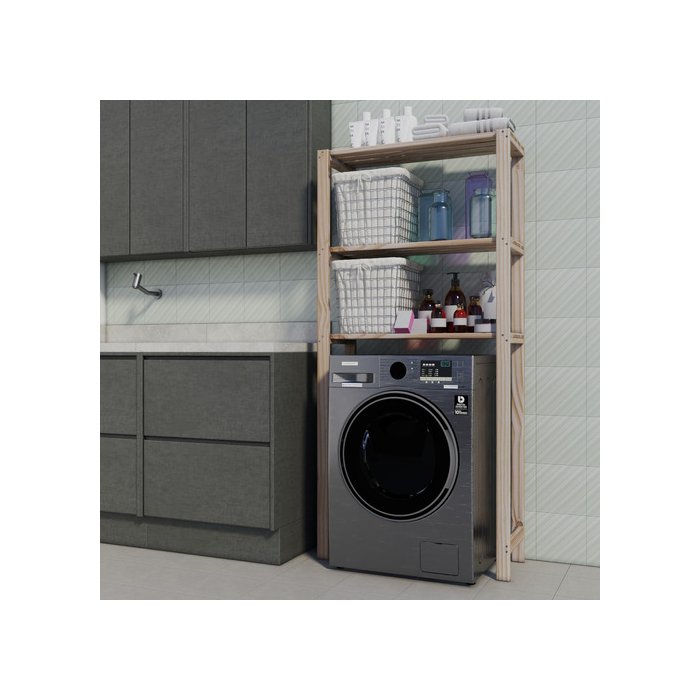 Estante Madeira Rustica Pinus Lavanderia Organizada Compacta Technox Marron