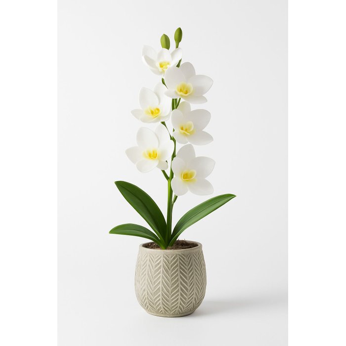 Com visual elegante e toque natural, essa orquídea é perfeita para quem busca praticidade sem abrir mão da beleza.