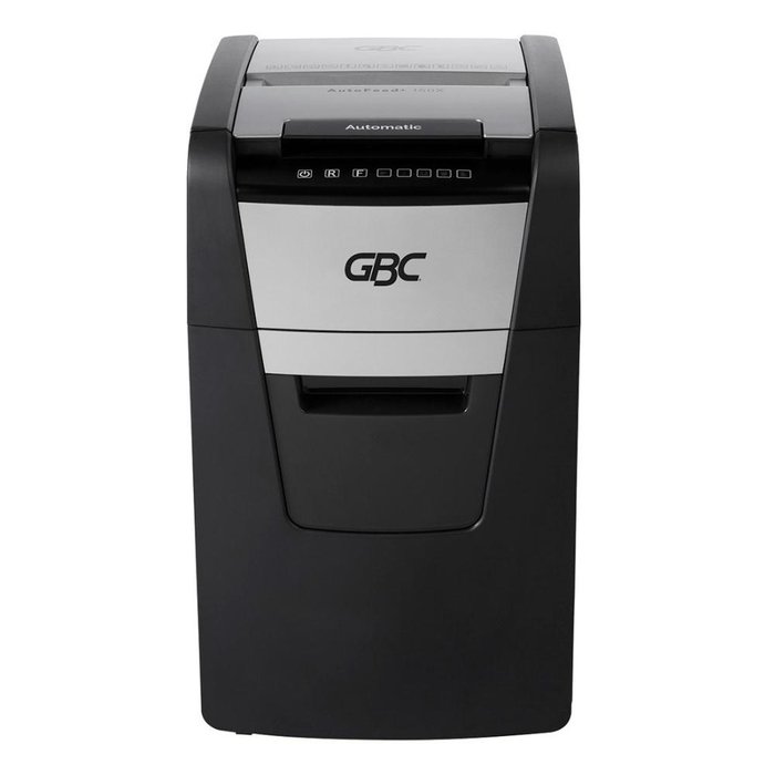A Fragmentadora Tilibra GBC Auto+ 150X é ideal para utilização compartilhada por até duas pessoas e conta com uma operação silenciosa, sendo perfeita para qualquer ambiente. A 150X possui a tecnologia patenteada Auto+, onde os rolos levam automaticamente o papel para os cortadores sem a intervenção do usuário - permitindo maior agilidade, ganhando assim mais tempo para outras tarefas importantes. Com manuseio simples e prático, basta inserir o que o usuário deseja fragmentar em um dos compartimentos indicados e pronto. No modo automático Stack-and-Shred (empilhar e triturar), a máquina consegue triturar até 150 folhas no tamanho A4 e manualmente, é possível inserir 8 por vez. Conta também com função para destruir cartões magnéticos e folhas que contenham clipes ou grampos.