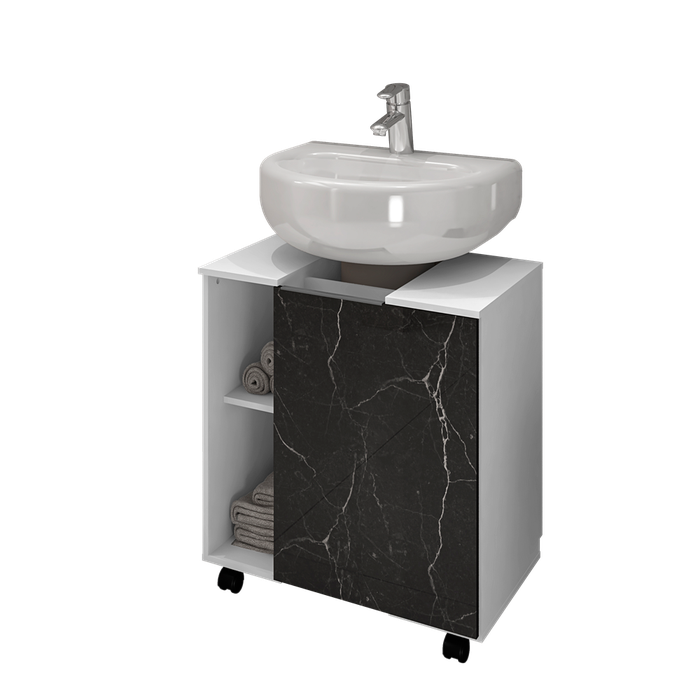 Gabinete Banheiro Rodinhas Nero Ultra Organizador Prateleira branco/preto