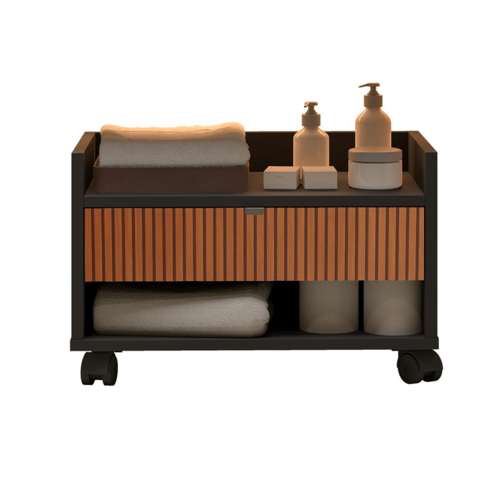 Gabinete de Banheiro com Rodinhas e Gaveta Preto Ripado