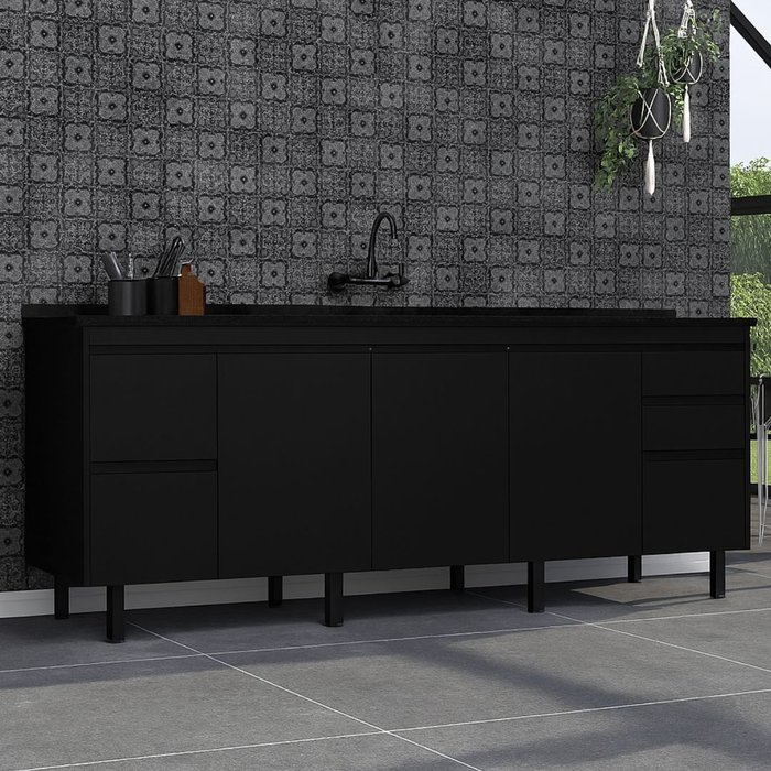 Gabinete de Cozinha 5 Gavetas 3 Portas 194cm Grande 100% Mdf:preto Preto
