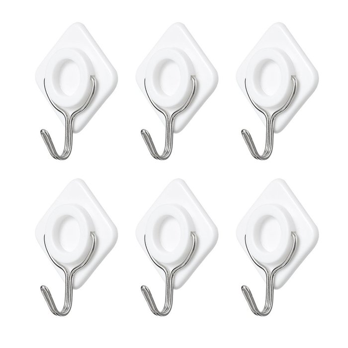 Gancho de Parede Adesivo Metal 2kg Conjunto 6 Unidades Organização sem Furo Branca