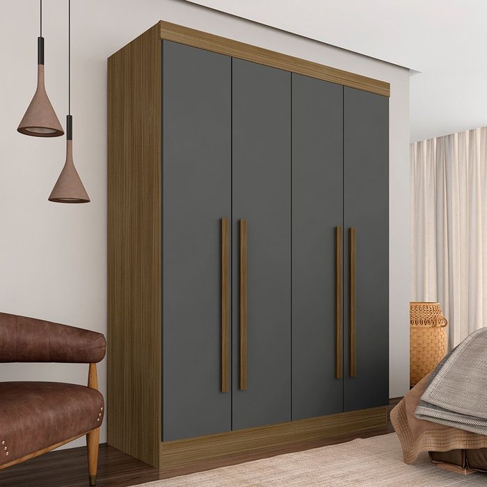 Guarda Roupa 4 Portas Solteiro Mayra Boreal/grafite - Móveis Arapongas Boreal/grafite