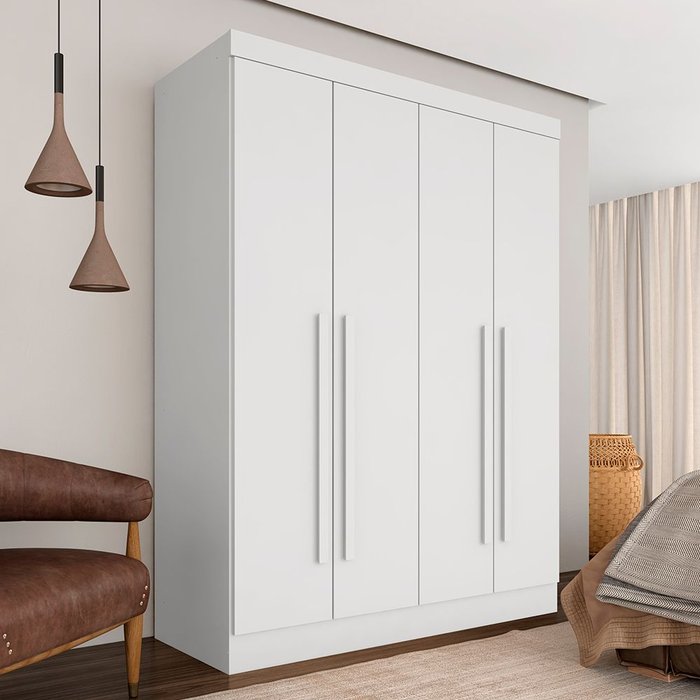 Guarda Roupa 4 Portas Solteiro Mayra Branco - Móveis Arapongas Branco