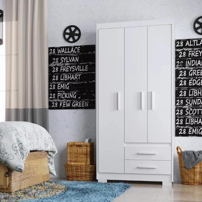 Guarda Roupa Casal 3 Portas 2 Gavetas Primacy Branco