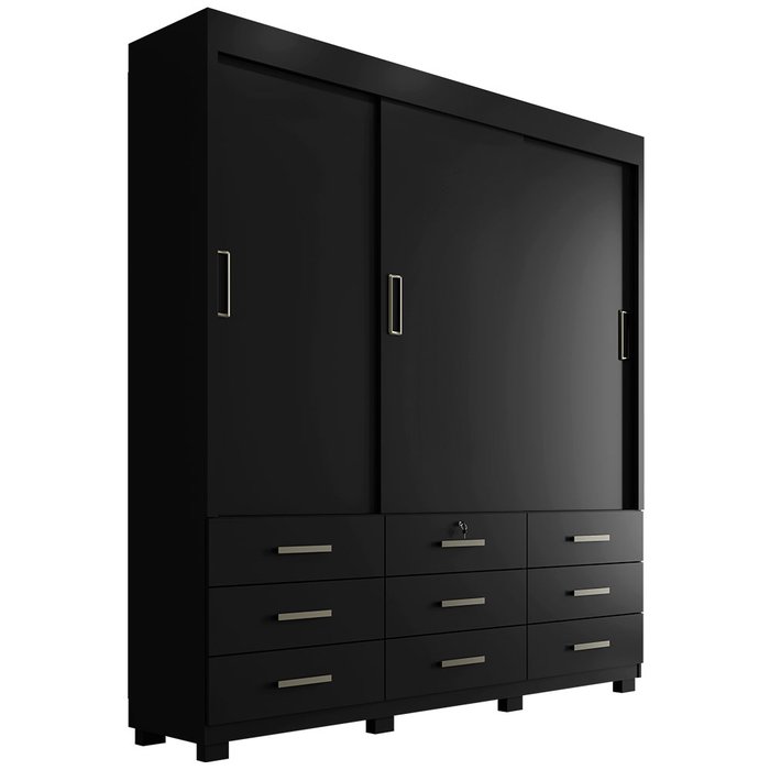 Guarda Roupa Casal 3 Portas de Correr 9 Gavetas Itapema Ll Preto - Saga Decor