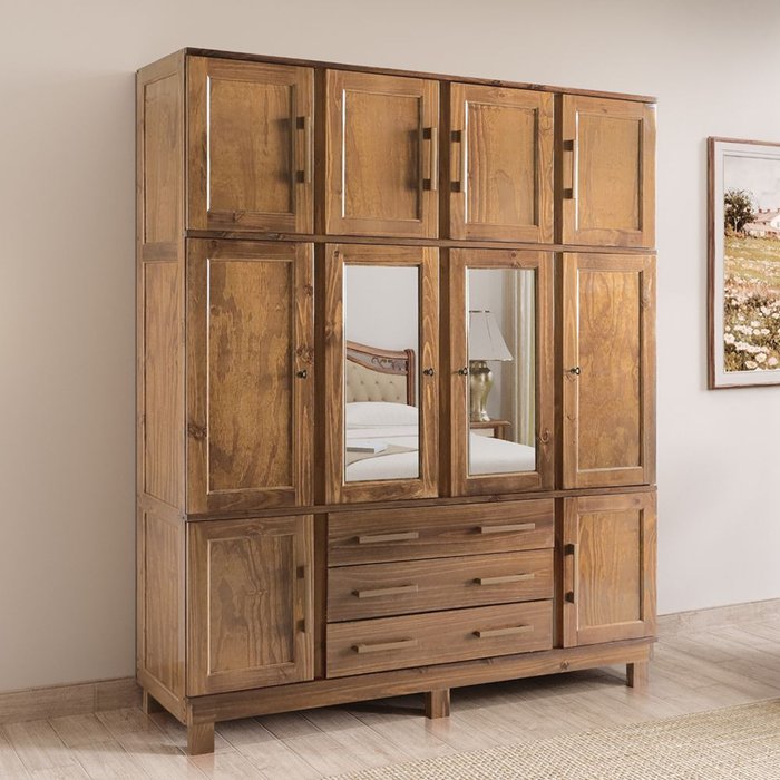Guarda Roupa Casal com Espelho e Pés 10 Portas 3 Gavetas Paris
