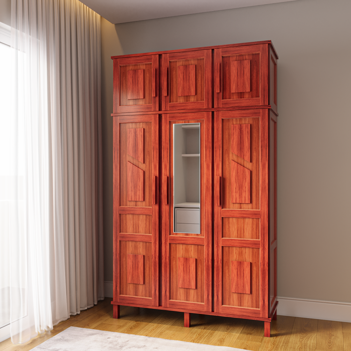 Guarda-Roupa Solteiro 1 Espelho 6 Portas e Cabideiros