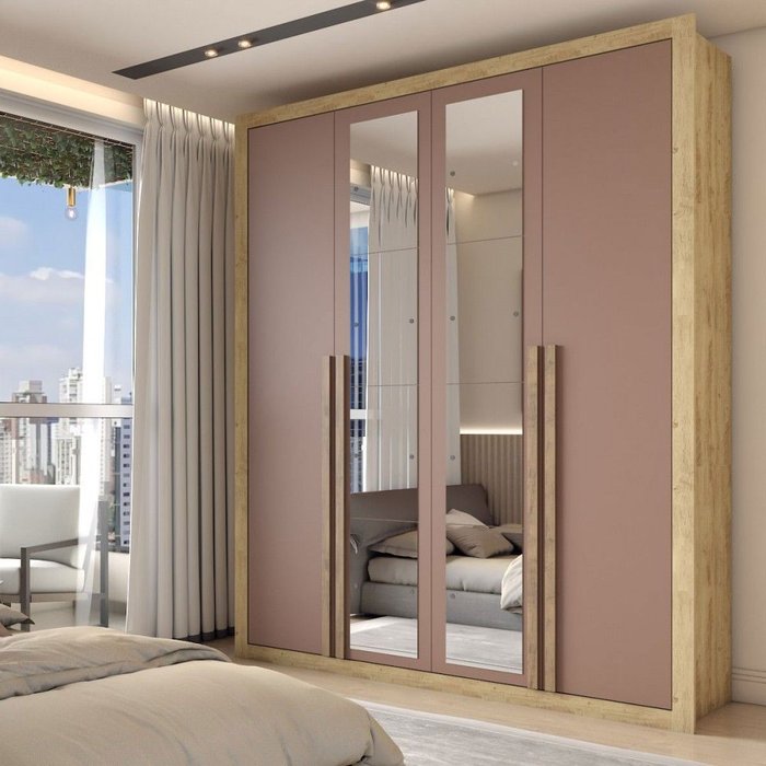 Guarda-roupa Solteiro Severo 4 Portas 3 Gavetas com Espelho - Panorama Móveis Capuccino