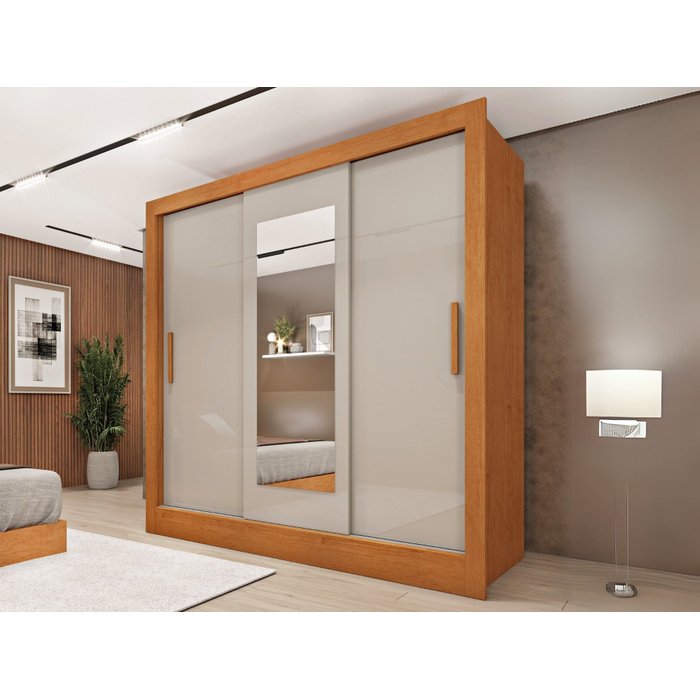 Guarda Roupa Valência com Espelho 3 Portas 4 Gavetas Tcil Móveis - Cinamomo/off White