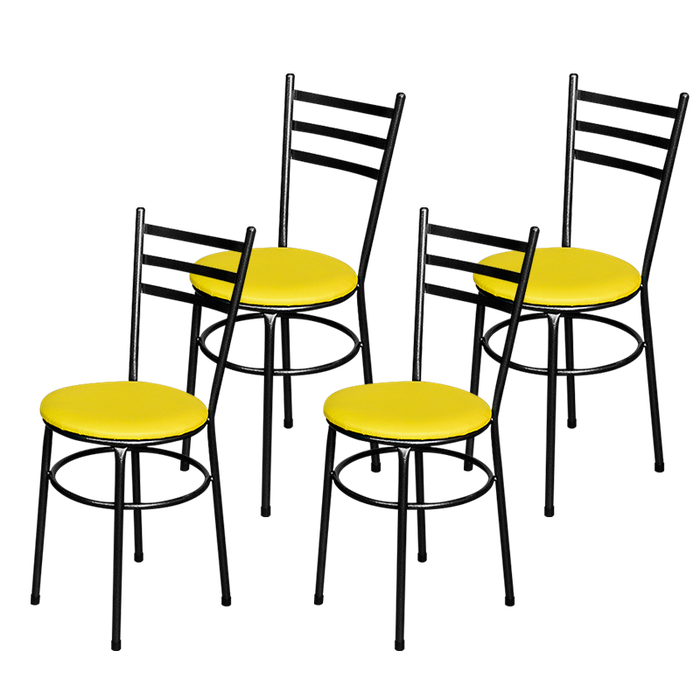 Jogo 4 Cadeiras Para Cozinha Epoxi Craqueada Assento Estofado - Amarelo Amarelo