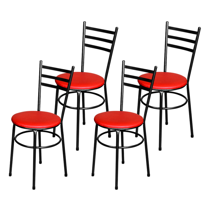 Jogo 4 Cadeiras Para Cozinha Epoxi Craqueada Assento Estofado - Vermelho Vermelho