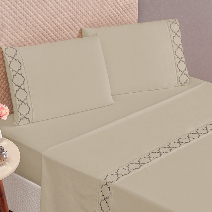 O Jogo de Cama para cama King com 04 peças confeccionado em Tecido Micropercal 300 Fios com detalhe Bordado com alto padrão de qualidade, proporciona conforto e sofisticação.