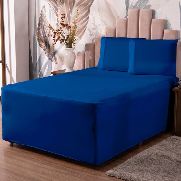Jogo de Lençol Luva Casal Conjugada Veste Colchão e Box Malha 3 Peças:azul Royal Azul royal