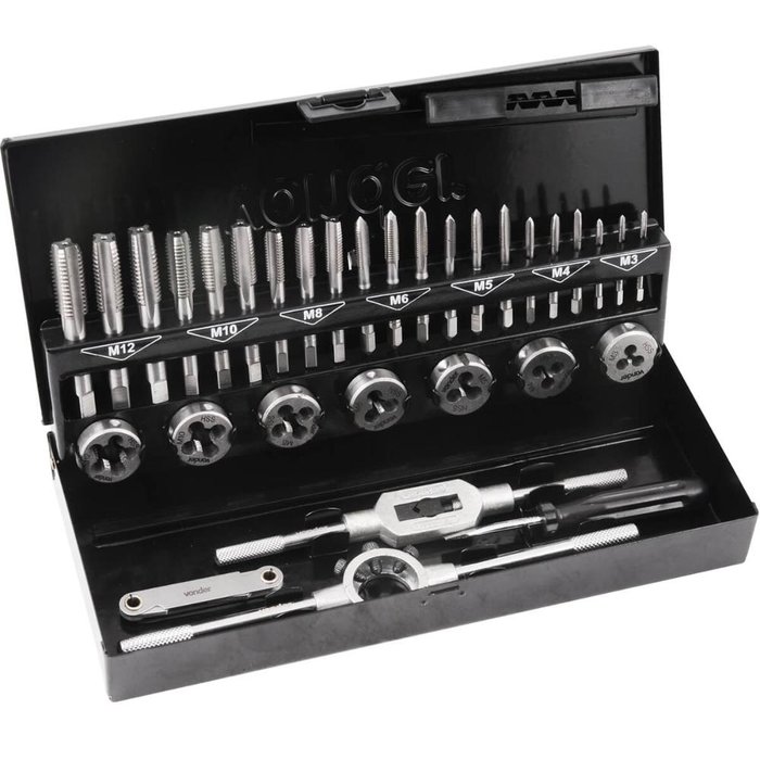 Jogo de Machos e Cossinetes Estojo Metálico 32 Peças Vonder Calibre Rosca