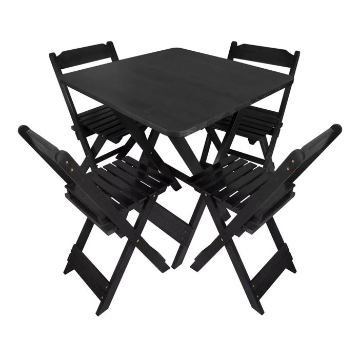 Jogo de Mesa Dobrável 70x70 Bar 4 Cadeiras Madeira Maciça - Preto
