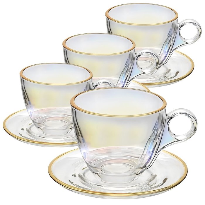 Jogo de Xícaras para Café Menfis Rainbow com Borda Dourada em Cristal com Pires 170 Ml - 8 Peças Rainbow Borda Dourada