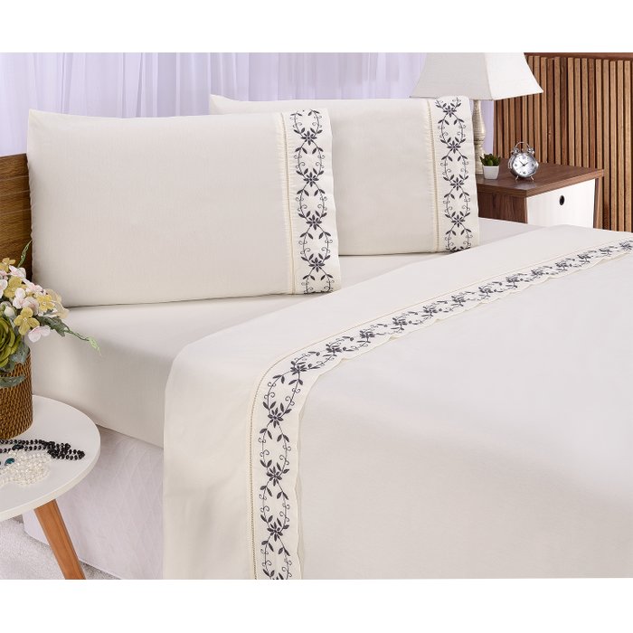 Jogo Lençol King 4 Peças 200 Fios Percal Veneza Palha com Grafite
