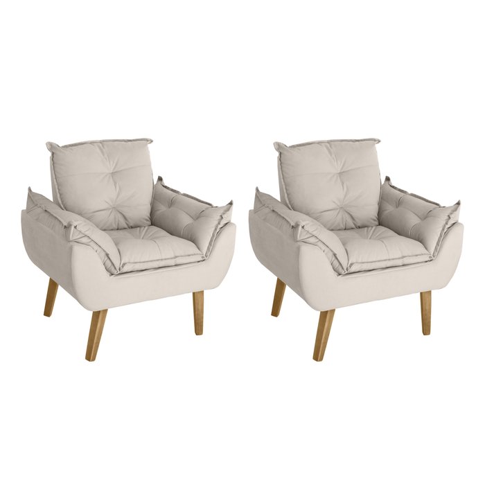 Kit 02 Poltrona/Cadeira Decorativa Glamour Opala Com Pés Quadrado Bege - Poltrona