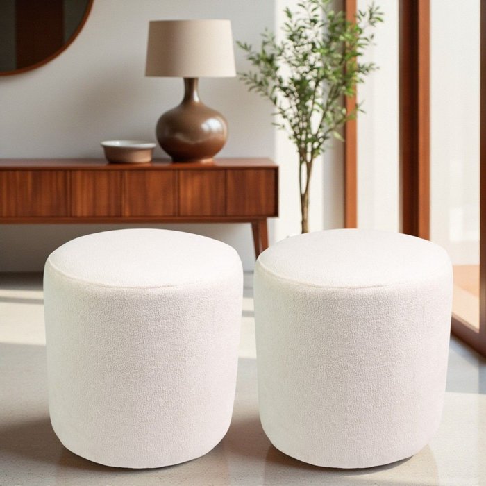 Kit 02 Puff Perse Decorativo Tecido Boucle Banqueta Puffe Redondo Off White