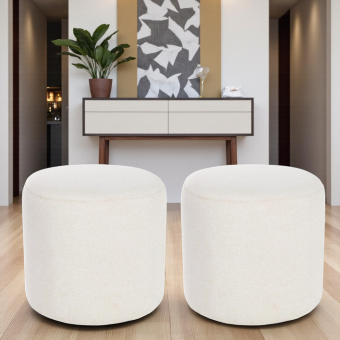 Kit 02 Puff Perse Redondo Decorativo Tecido Linho Puffe Banqueta Cru