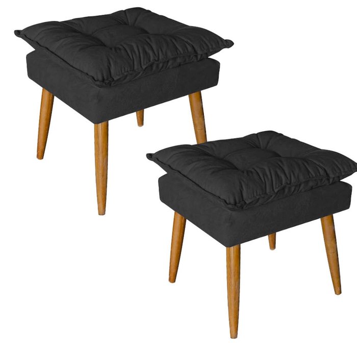 Kit 02 Puff Puf Banqueta Opala Para Quarto Sala Recepção Suede Preto - Ninho Decor
