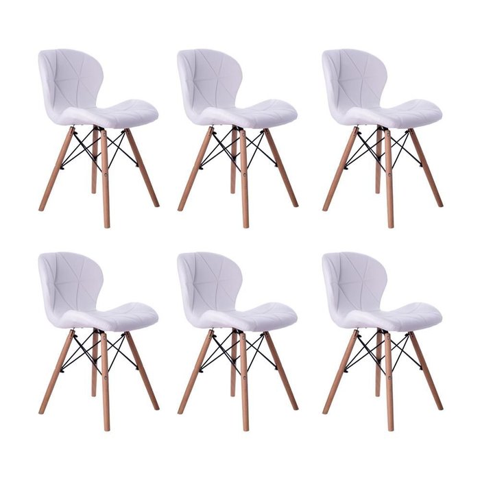 Kit 06 Cadeira Estofada Jantar Charles Eames Eiffel Slim Wood Confort Branco Branco
